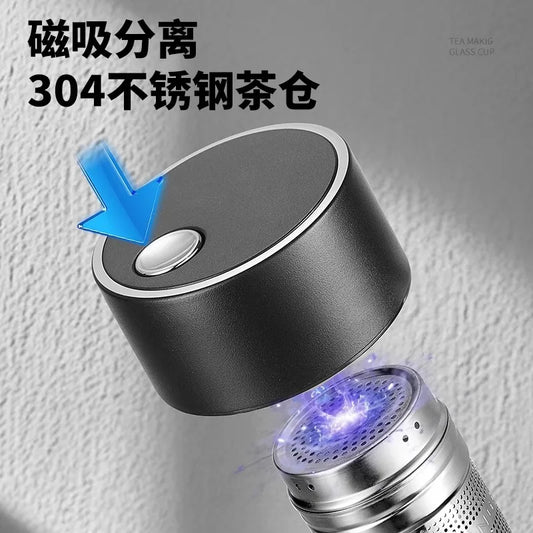 Glass Water Bottle With Tea Strainer and Magnetic Cup Lid